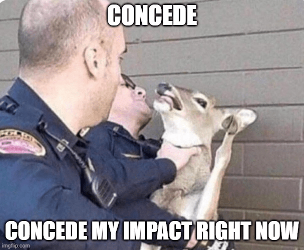 For example, if you wanted to get them to agree that climate change was the biggest impact of the round via impact weighing, you wouldn’t want to start by asking “do you think climate change is the biggest impact of the round?” If your opponent was going with a nuke war impact that focused more on severity/magnitude rather than its likelihood/probability, they would directly say no to the vague and obviously targeted question – you wouldn’t gain any advantage out of it. Instead: