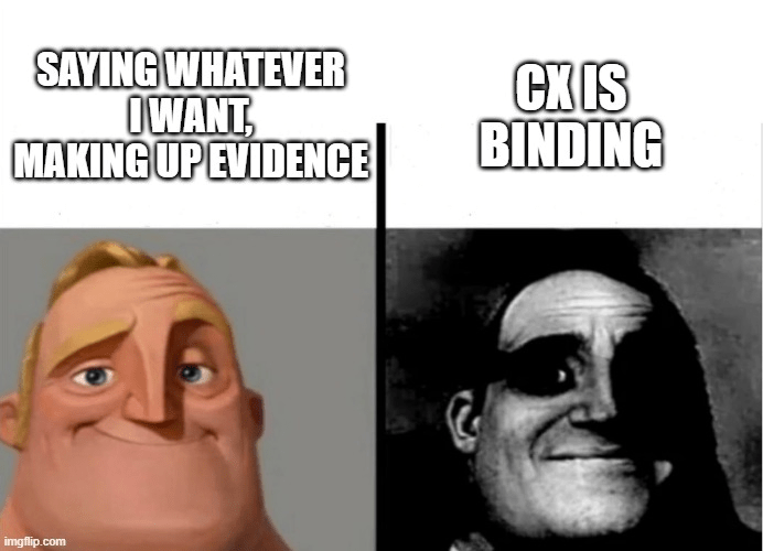 But of course, you can’t be completely unaware of what is going on, because anything you say in CX can be used against you during the rest of the round. This is the notion of how cross-examination is binding. Whatever you reveal about your case, evidence, strategy, etc can be brought up by your opponent in their next speeches to win the round with, so don’t make fatal concessions if you don’t need to. The same goes visa versa – you can fully exploit weaknesses your opponent reveals in CX to win.