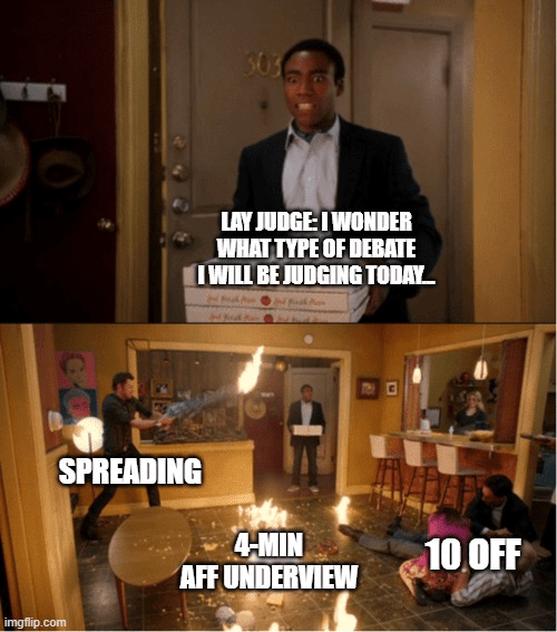 Flay judges are (simply put) a combination of lay judging and flow judging – usually parents that have understood much of the ins and outs of debate, or former debaters that have graduated high school recently. The line-by-line debate matters more (but never lose sight of the overall picture either), as most flay judges actively flow the round. Running progressive arguments is sometimes okay, if explained in concise terms, connected to real examples, and presented at a medium to quick rate of talking.
