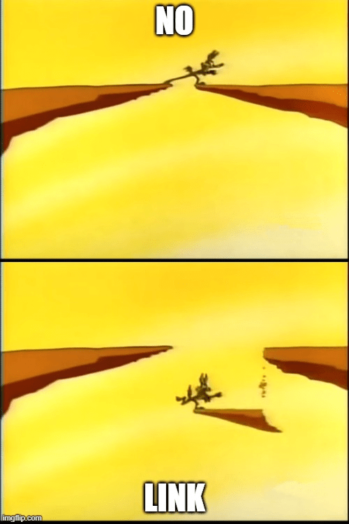 Delink (a.k.a. “no link“): this attacks a specific link in the story of your opponent’s contention. Delinks say that the link they described is actually FALSE, therefore causing the rest of their contention (including the REALLY TERRIFYING impact) to not happen at all and not affect the debate.
