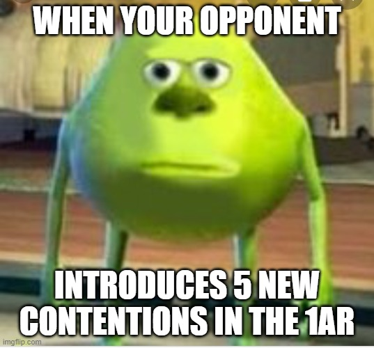Another note: It is important to ALWAYS extend your own case first. I cannot stress how necessary this is, as I have lost multiple rounds by going all-in on answering my opponent’s case first (mostly defense), eventually forgetting the clock and running out of time to rebuild my own case (offense). Remember that you can win without defense, but you will always lose if you don’t uphold your offense, a.k.a. your contention(s). If you do not re-explain and address responses made on your case, you have effectively dropped your offense. - Move on to opponent’s case: time to attack / respond to your opponent’s contentions! Much the same with line by lining their responses previously when rebuilding your own case, here is where you introduce turns, impact mitigation, and link defense to their contentions (in the order they presented the links & impacts, of course). If they have decided to kick an argument, usually you can just ignore it and move on. But in the case they kicked it without sufficiently answering a turn you made on it, you can hammer in the turn (in your 2NR or 2AR) and try to make this a key issue of the round for the judge to consider, because your opponent basically conceded / insufficiently covered a piece of your offense.