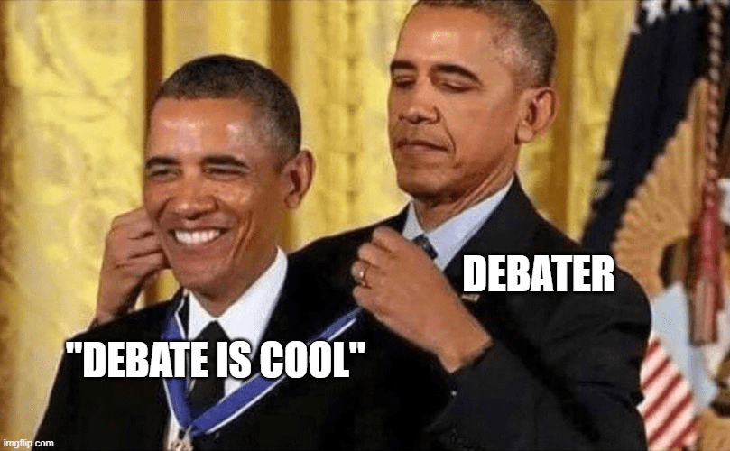 Community involvement, including volunteering to judge young debaters (novices), helping others to grow, and leading your team to success, are at the core of the debating experience. It’s about truly wishing to see others succeed, and witnessing current and future debaters thrive. Leading a debate team or club can test one’s abilities as one way to give back to the community. You might find happiness in passing it to others. Who knows, you may even start a website to write and publish memey debate articles one day!